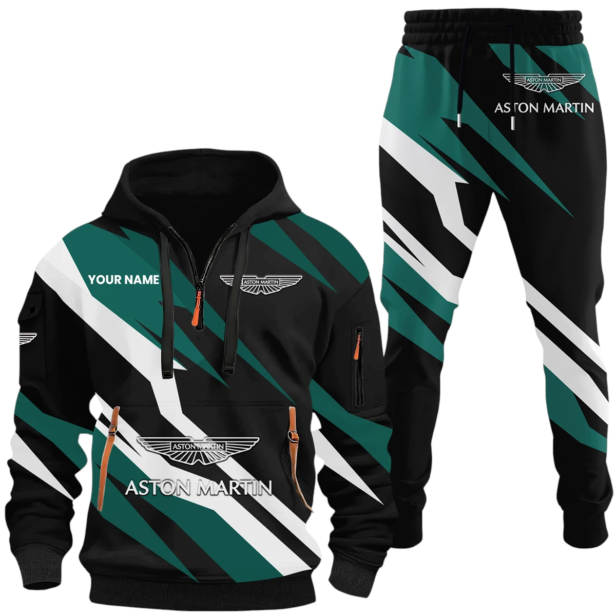 Aston Martin Half Zip Hoodie x Long Pants Set All-over Print, Custom Name HIHI090525Y26QZ3HASM