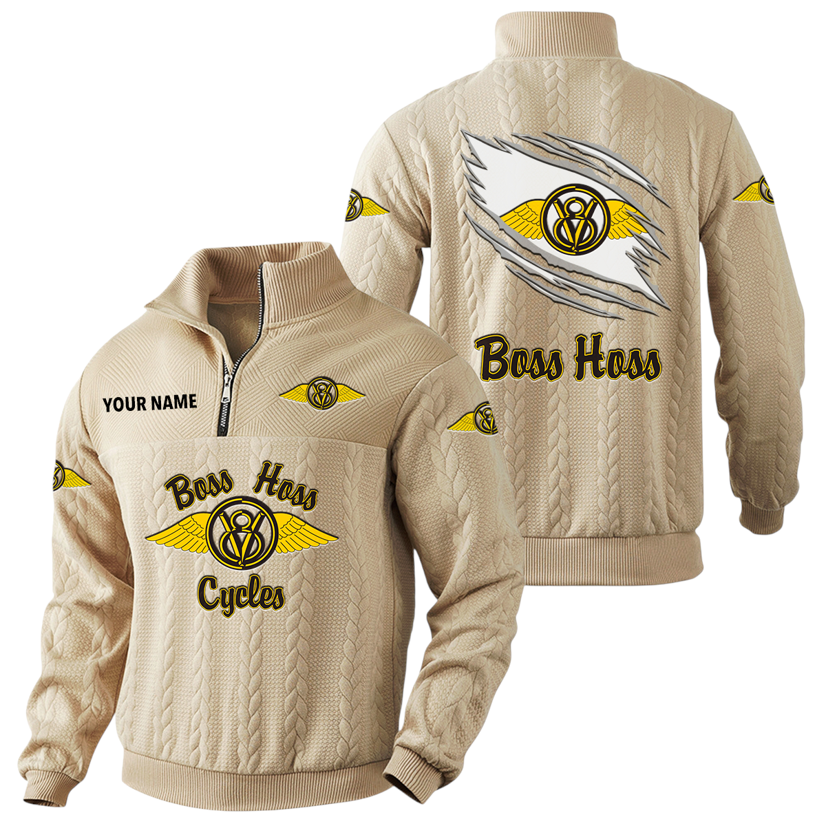 Boss Hoss Cycles Quarter-Zip Sweatshirt Stand Collar Custom Text