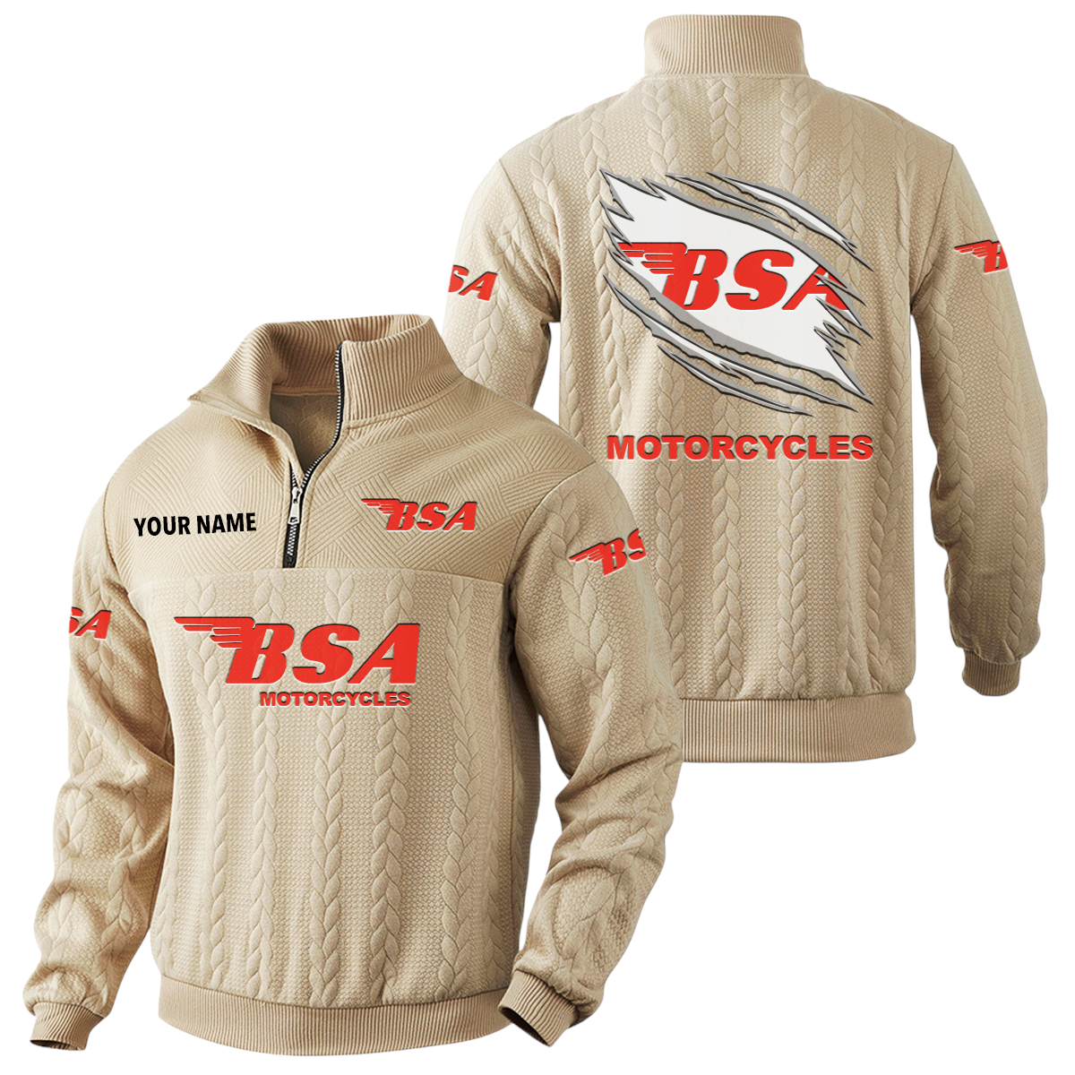 BSA Motorcycles Quarter-Zip Sweatshirt Stand Collar Custom Text