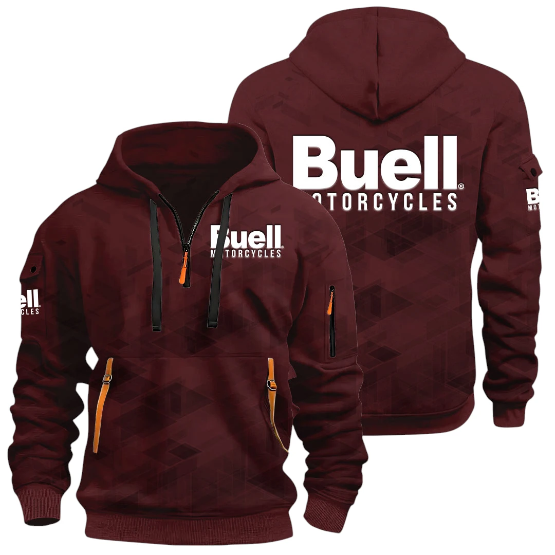 Buell Motorcycles Half Zip Hoodie All Over Prints Multi Pockets Custom Name Gift For Fan