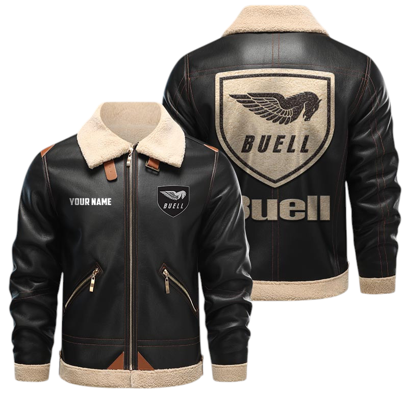 Buell Motorcycles PU Leather Fleece Lining Bomber Jacket Winter Coat Custom Name