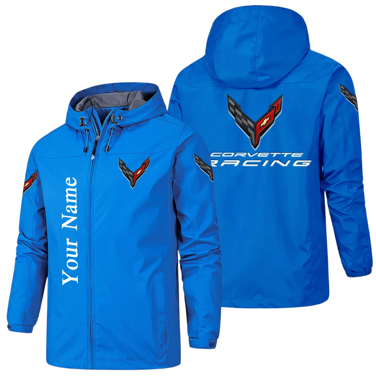 Corvette Racing Hooded Windbreaker Jacket Custom Name