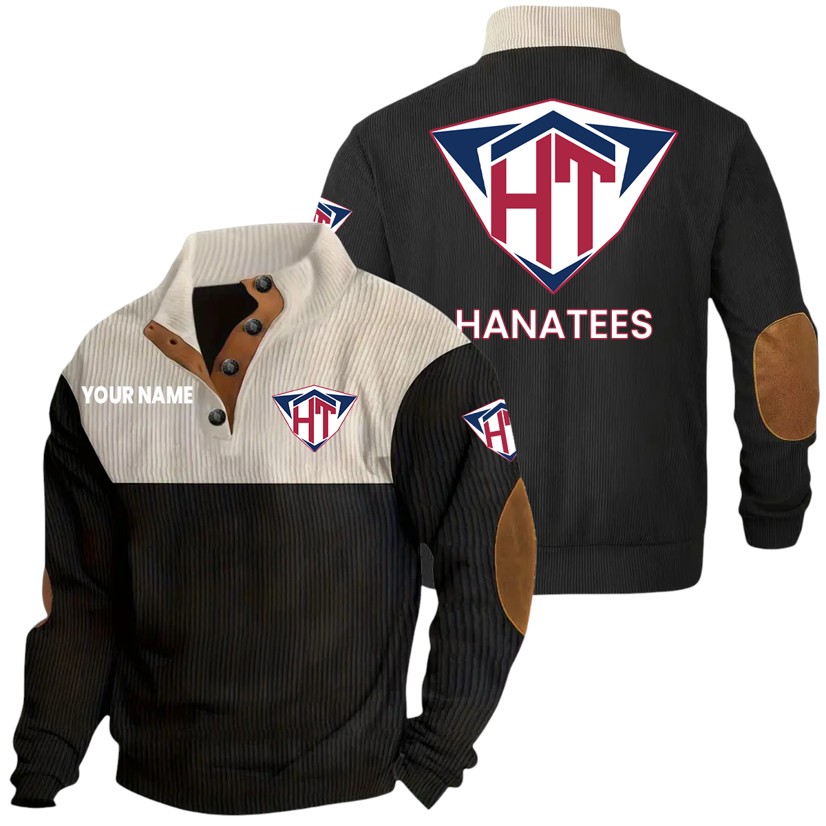 Hanatees Men’s Knitted Ribbed Corduroy Sweatshirt Mid Stretch Stand Collar Pullover Sweater, Custom Name