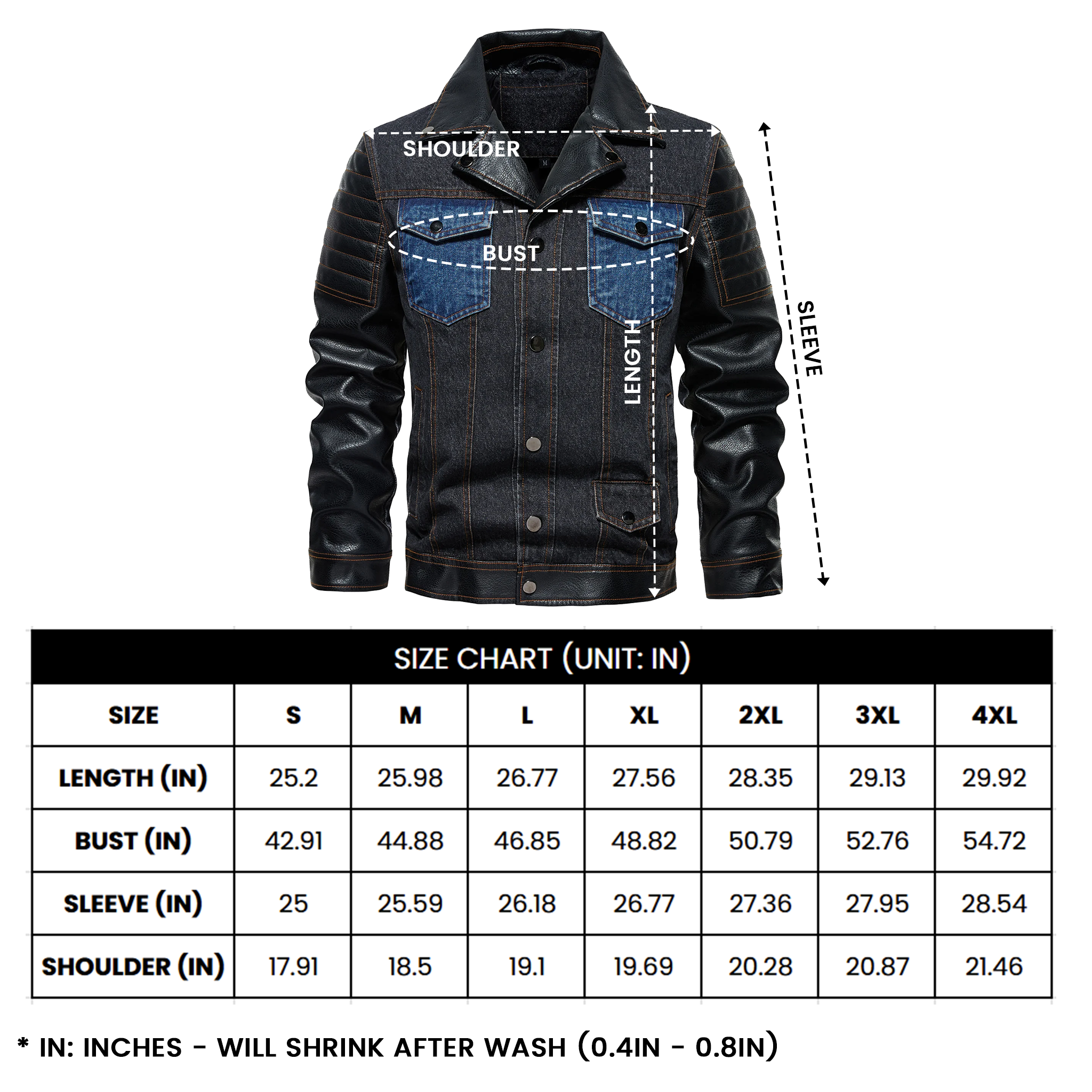 Innovative Combination: This jacket adopts a unique fusion of denim and PU leather, offering a compelling visual contrast and enhanced durability. You get the rugged texture of denim paired with the smooth, sleekness of faux leather accents.