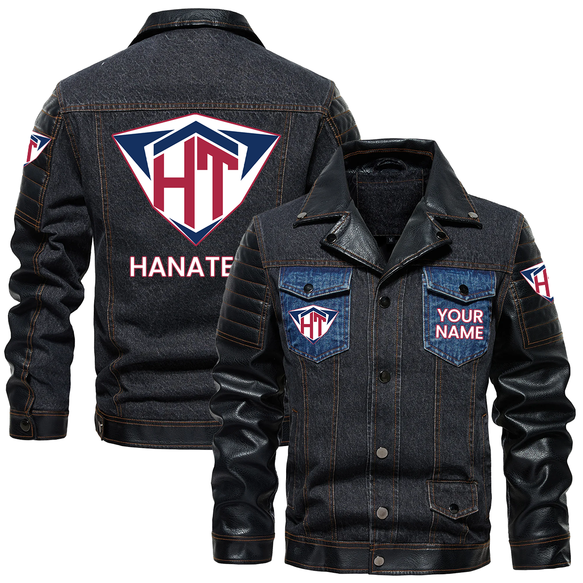 Hanatees Men’s Retro Denim Jacket x PU Sleeve Multi-Pockets