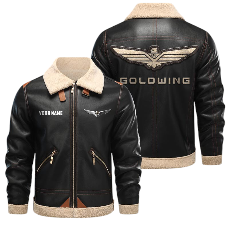 Honda Gold Wing PU Leather Fleece Lining Bomber Jacket Winter Coat Custom Name
