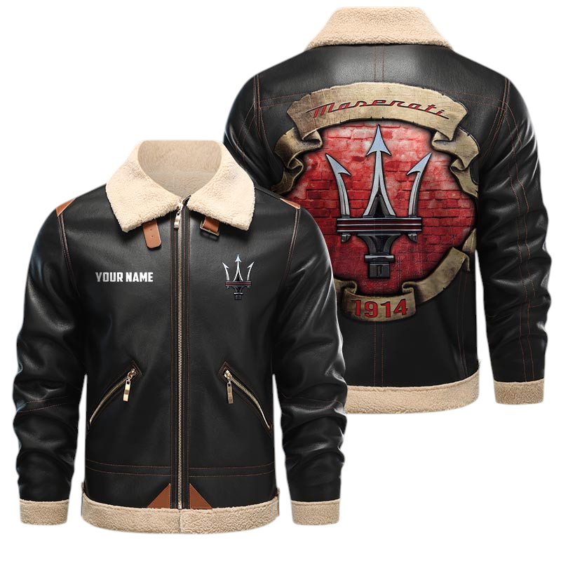 Maserati PU Leather Fleece Lining Bomber Jacket Winter Coat Custom Text