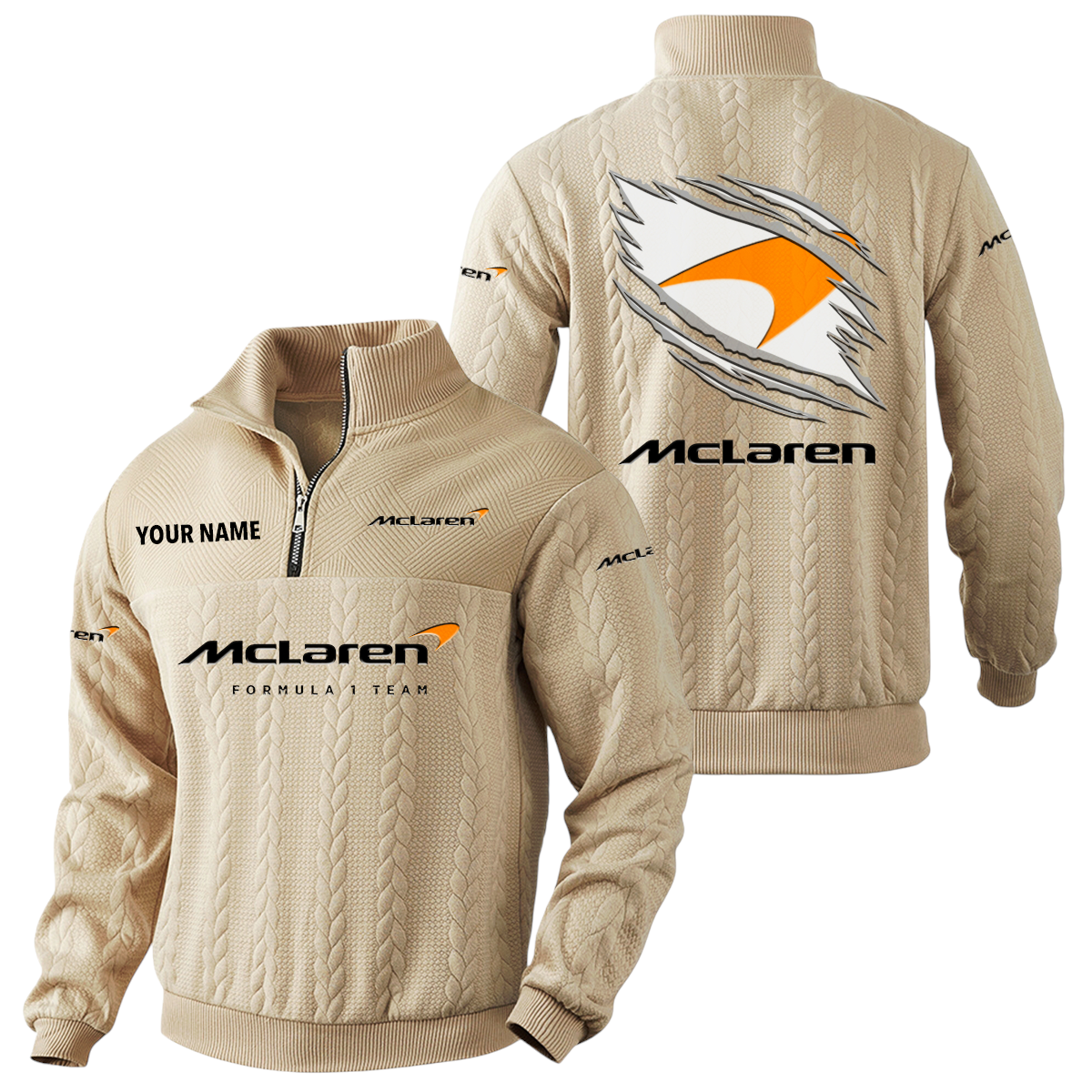 McLaren Racing Limited Quarter-Zip Sweatshirt Stand Collar Custom Text