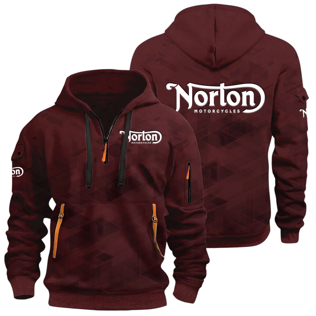 Norton Motorcycle Half Zip Hoodie All Over Prints Multi Pockets Custom Name Gift For Fan