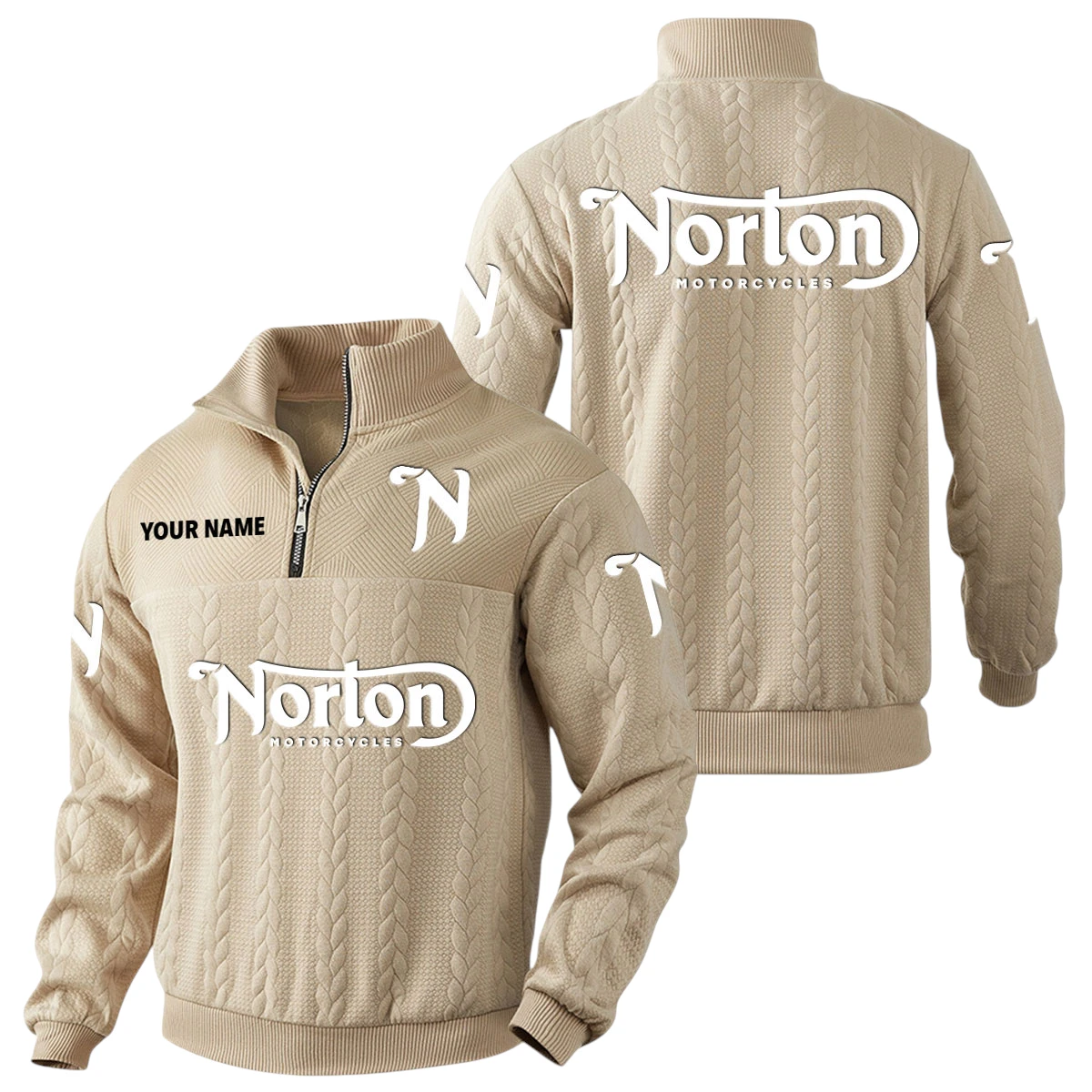 Norton Motorcycle Quarter-Zip Sweatshirt Stand Collar Custom Name
