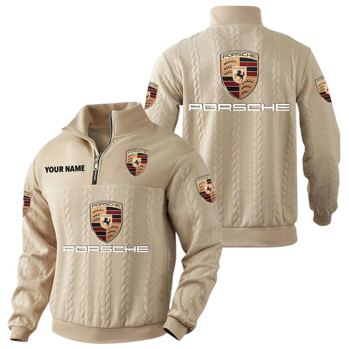 Porsche Quarter-Zip Sweatshirt Stand Collar Custom Name