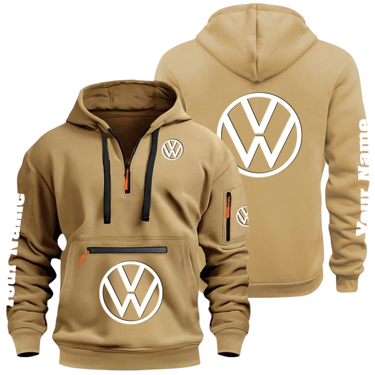 Volkswagen Half Zip Hoodie Multi Zipper Pocket Custom Name
