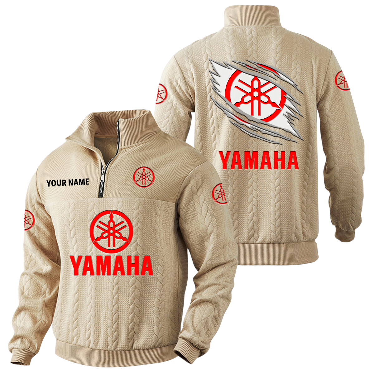 Yamaha Motor Quarter-Zip Sweatshirt Stand Collar Custom Text